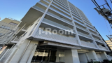 敷地は不忍通り沿いにあり、グレーのタイル貼りの外壁、アール状のバルコニーが印象的です。