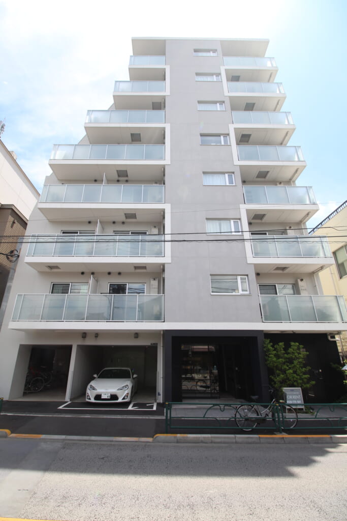 プラウドフラット根津谷中は、グレーを基調としたスタイリッシュな外観デザインとなっており落ち着いた建物です。